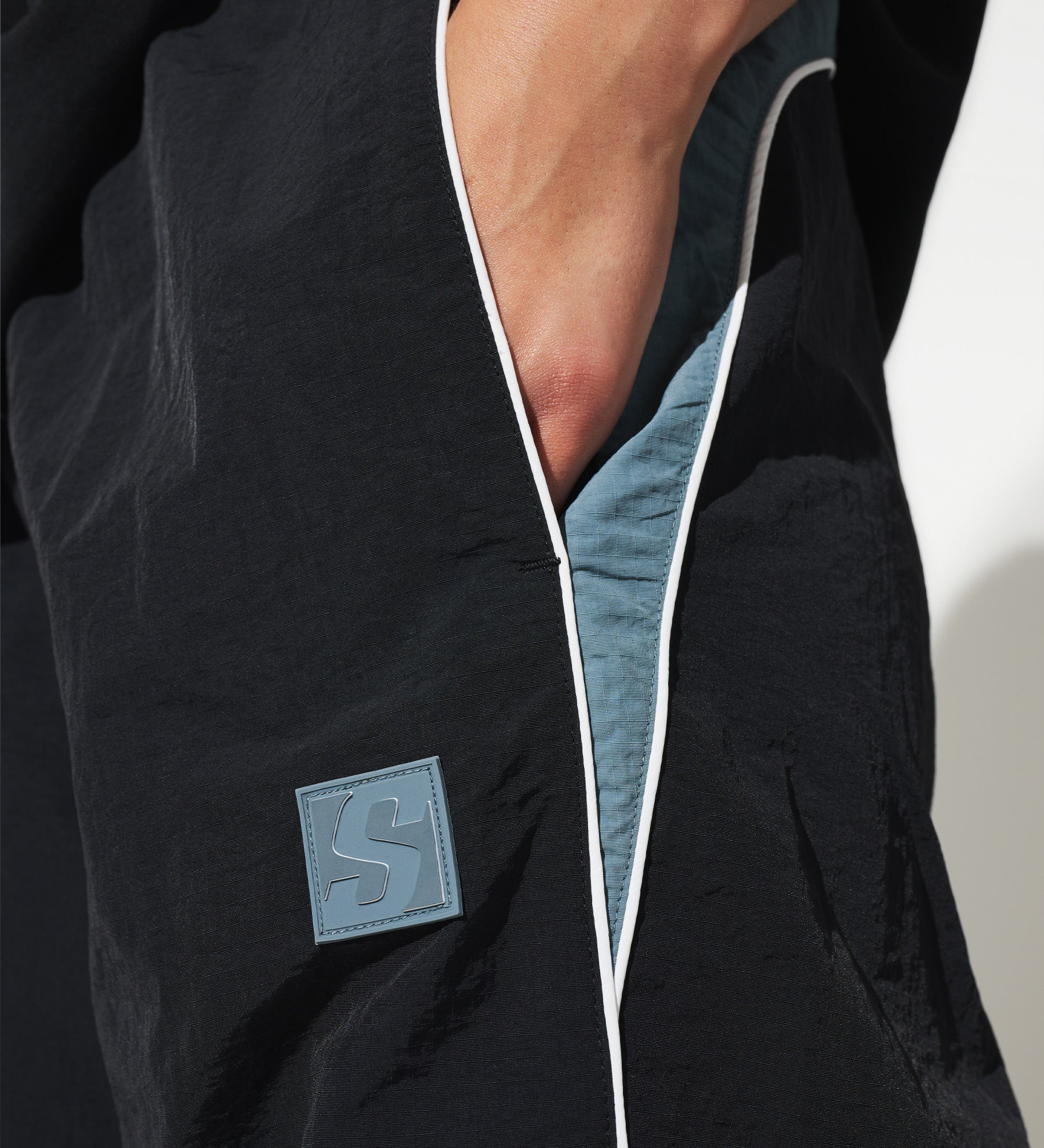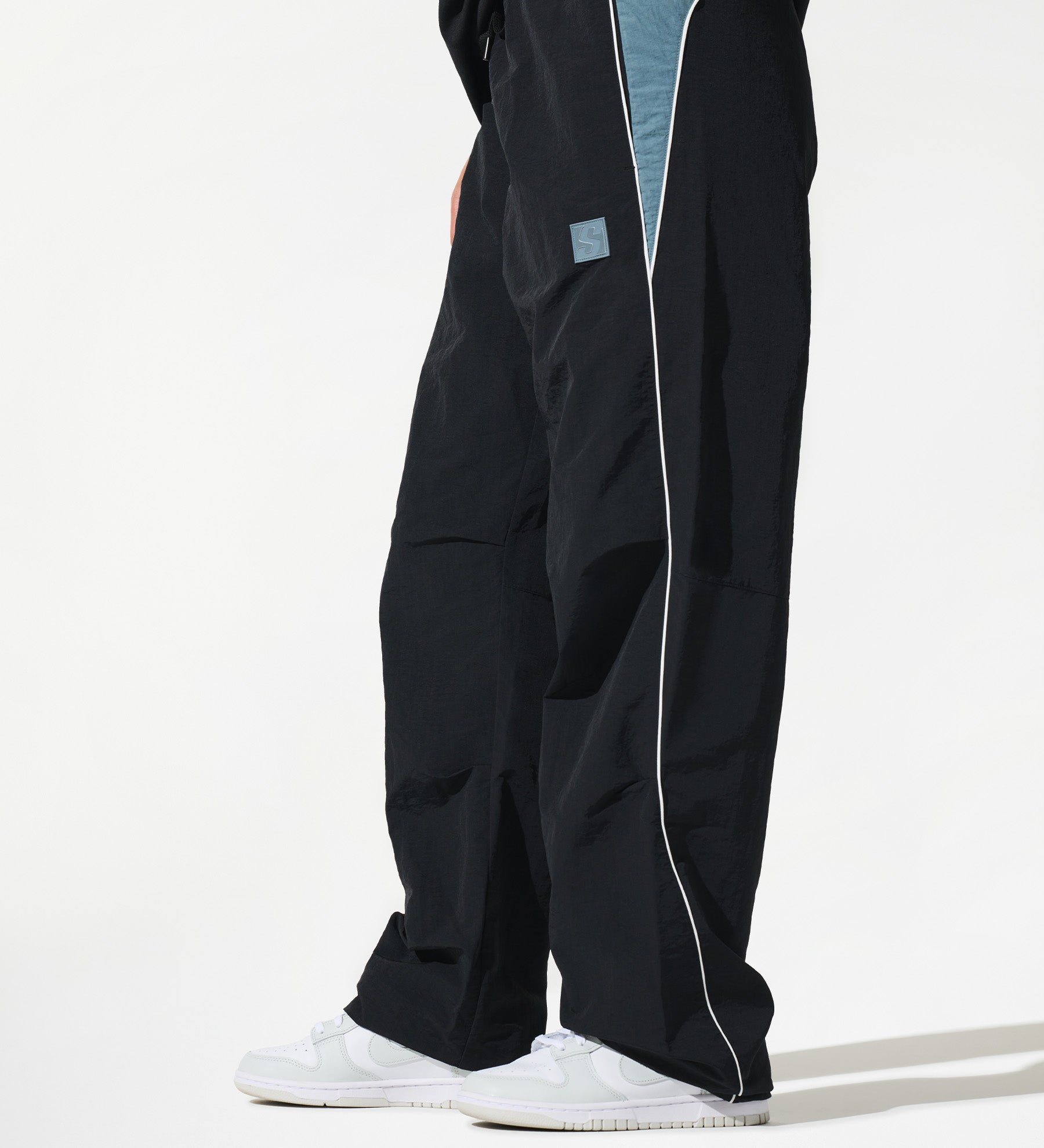 Astro Track Pants [Black/Storm Blue] – Sidemen Clothing: AW24 SPACE. Contrast panelling to the pockets and rear. Raised 3D effect S pocket logo. 100% Polyester. Shop the collection now!