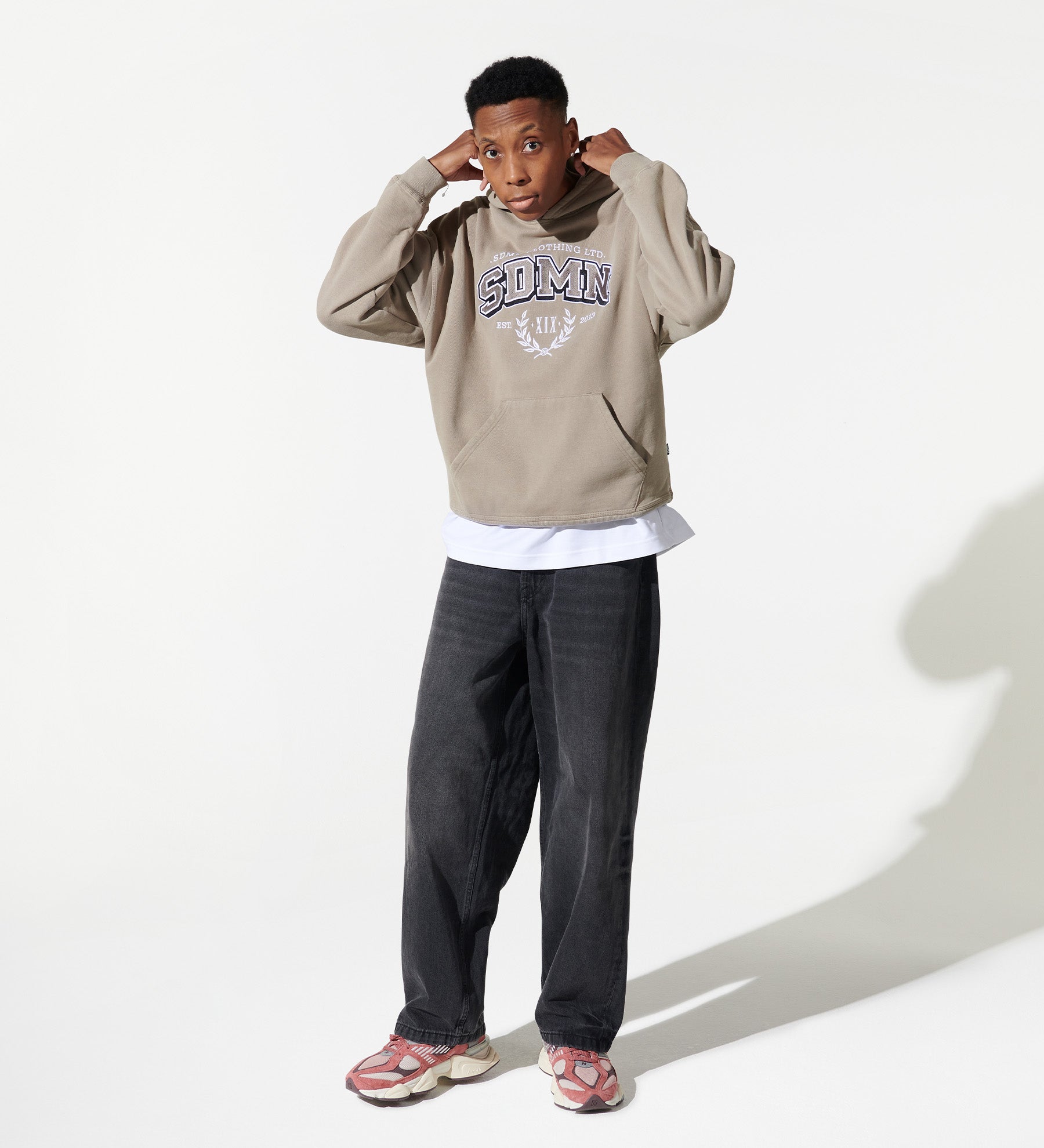 SDMN Imperial Varsity Washed Hoodie Fossil – Sidemen Clothing: Imperial Varsity Collection. Imperial Varsity tatami embroidery applique design. 80% Cotton/20% Polyester, oversized/drop shoulder fit.