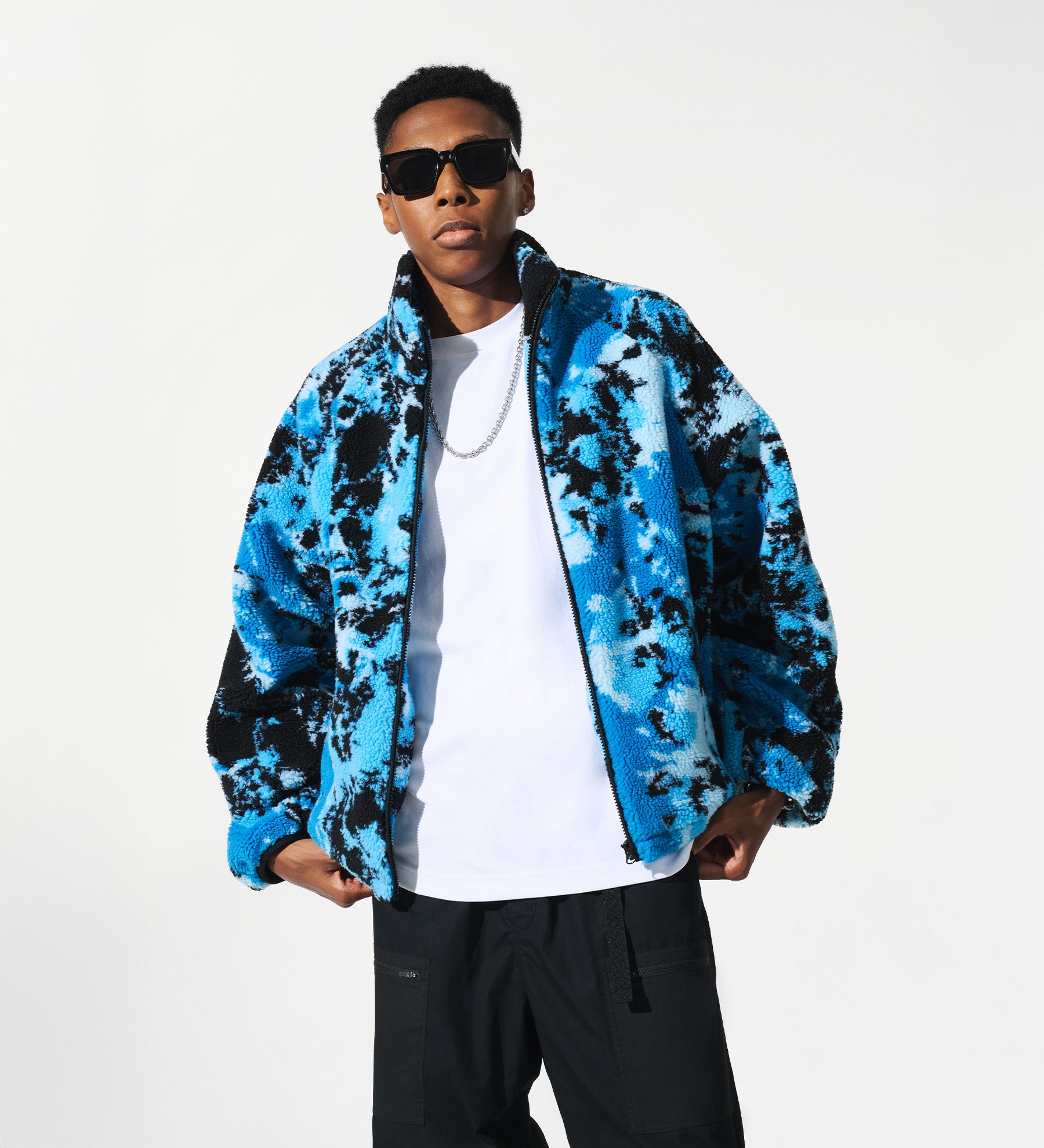 Studios Camo Fleece [Blue] – Sidemen Clothing: Studios Collection. SDMN_STUDIOS woven tag. Custom XIX cord stoppers. Pongee polyester lining. 100% Polyester. Shop the collection now!