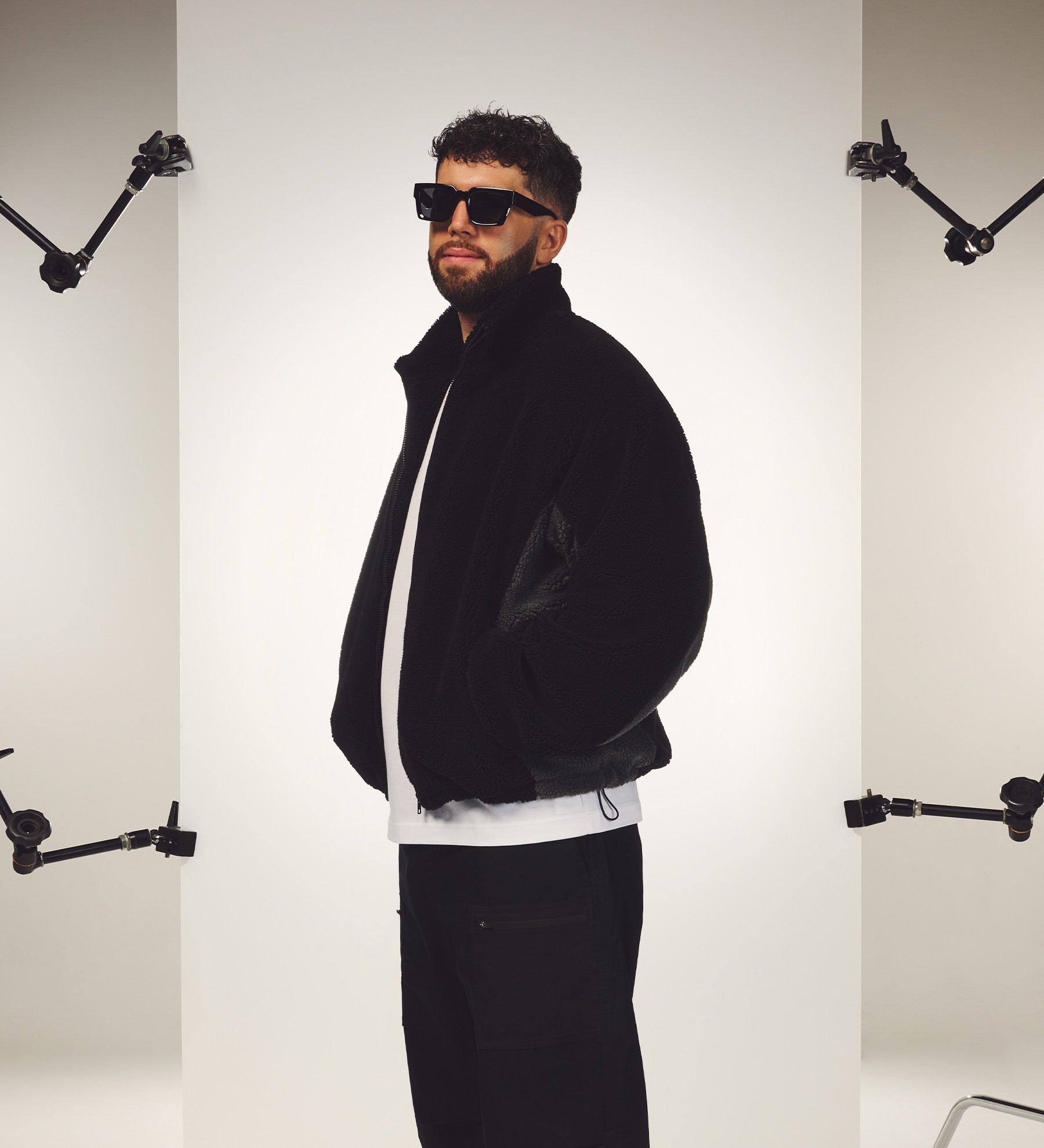 Studios Fleece [Black/Grey] – Sidemen Clothing: Studios Collection. SDMN_STUDIOS woven tag. Custom XIX cord stoppers. Pongee polyester lining. 100% Polyester. Shop the collection now!